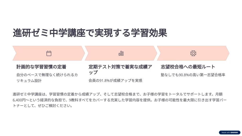 進研ゼミ中学講座は、学習効果を最大限に引き出すための多様なサポートと充実した教材を提供しています。
