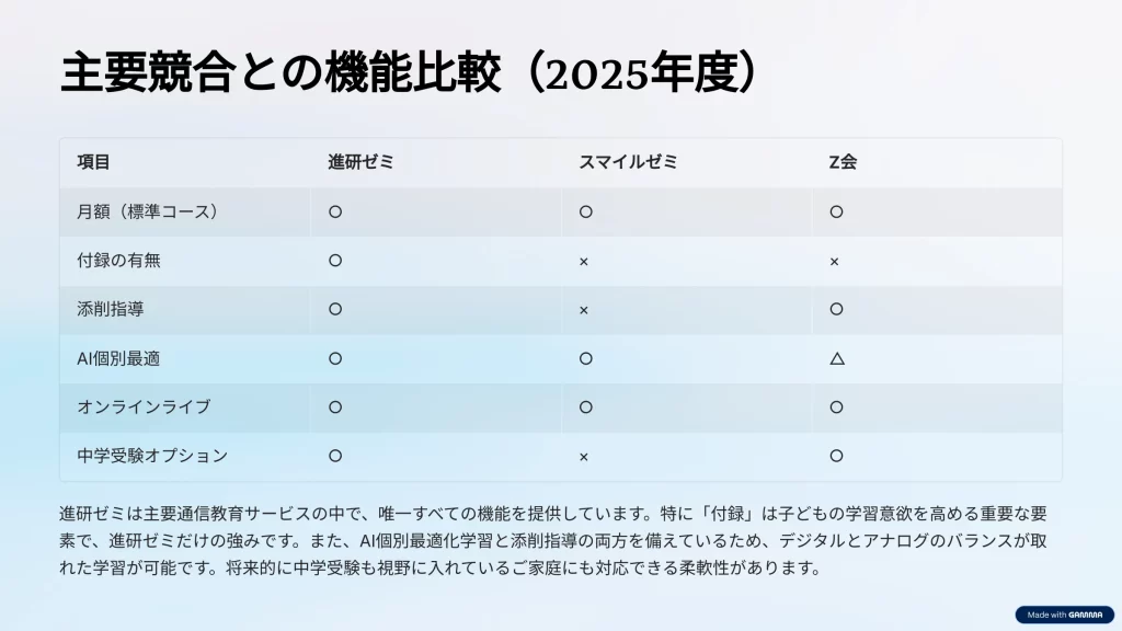 5. 他社比較・オプション活用・FAQ──お子さんに最適な選択を後押し